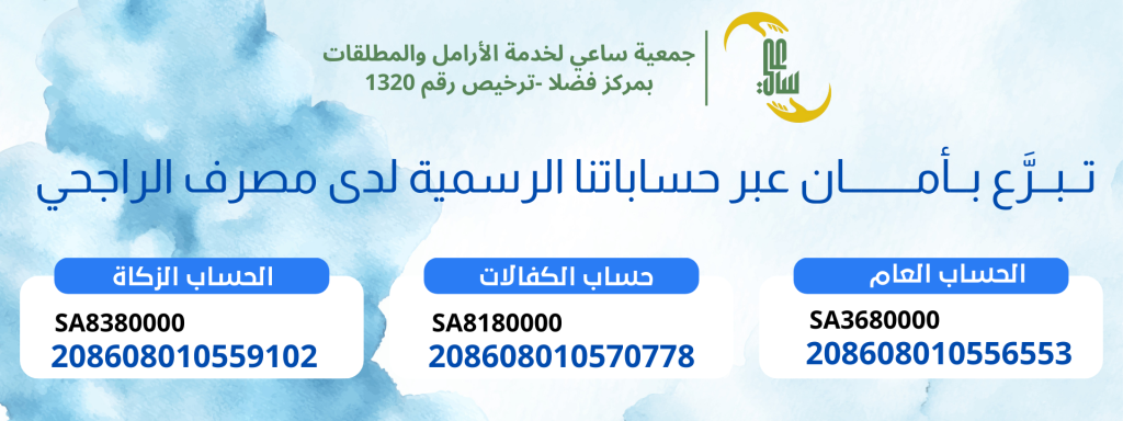 الصفحة الرئيسية جمعية ساعي لخدمة الأرامل والمطلقات بمركز فضلا تأسست جمعية ساعي لخدمة الأرامل والمطلقات بمركز فضلا بمحافظة العلا وفقًا لنظام الجمعيات والمؤسسات الأهلية، وتم تسجيلها لدى المركز الوطني لتنمية القطاع غير الربحي برقم 1320 في تاريخ 9 / 01 / 2019 م حياك ، تعرف علينا الأرقام تتحدث المؤسسون 0 مجلس الإدارة 0 الموظفون 0 أسرة 0 فرد 0 أرملة 0 مطلقة 0 يتيم 0 أبناء المطلقات 0 إحصائيات البرامج والأنشطة لعام 2023 م كفالة الأرامل أرملة 0 ريال 0 كفالة الأيتام يتيم 0 ريال 0 مشروع الزكاة أسرة 0 ريال 0 السلة الغذائية أسرة 0 ريال 0 مساعدات علاجية مستفيد 0 ريال 0 الأجهزة الكهربائية أسرة 0 ريال 0 سداد إيجارات أسرة 0 ريال 0 سداد فواتير الكهرباء أسر 0 ريال 0 ترميم المنازل أسرة 0 ريال 0 مساعدات مقطوعة أسرة 0 ريال 0 خزانات المياه أسرة 0 ريال 0 كسوة الشتاء فرد 0 ريال 0 شركاؤنا